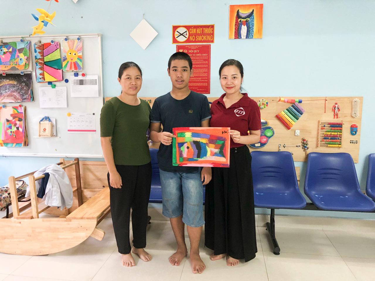 At present, most families with children with autism encounter many problems of life including financial one. Many parents do not have the enough economic conditions and therefore, leave things to the fate. Commiserating with the circumstances of the talented boy – Quang Huy as well as the heart of the mother who have been raising her child with autism alone, as soon as received information about this case, FIT collective visited Vkagbe Inclusive Education Support and Consulting Center, where Quang Huy is studying to send him regards, encourage and give a small amount of money to support cost for his family. Mrs. Nga – Quang Huy’s mother was deeply touched and sent her sincere thanks to staffs and Board of FIT Group for visiting and helping the family. The money is not a big amount but this kindness has helped to reduce the burden of study and daily expenses.