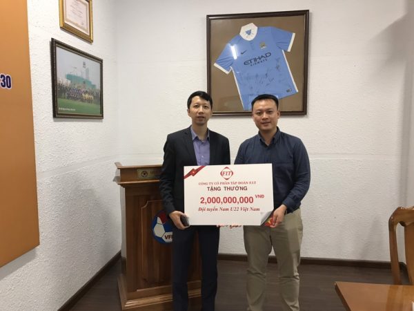Do ban huấn luyện và các cầu thủ đội tuyển U22 hiện đang tập huấn tại Hàn Quốc nên ngày 16/12/2019, đại diện của FIT Group đã trao thưởng 2,000,000,000 (2 tỉ đồng) cho đại diện của bóng đá nam là ông Đoàn Anh Tuấn – trưởng Phòng các đội tuyển quốc gia.